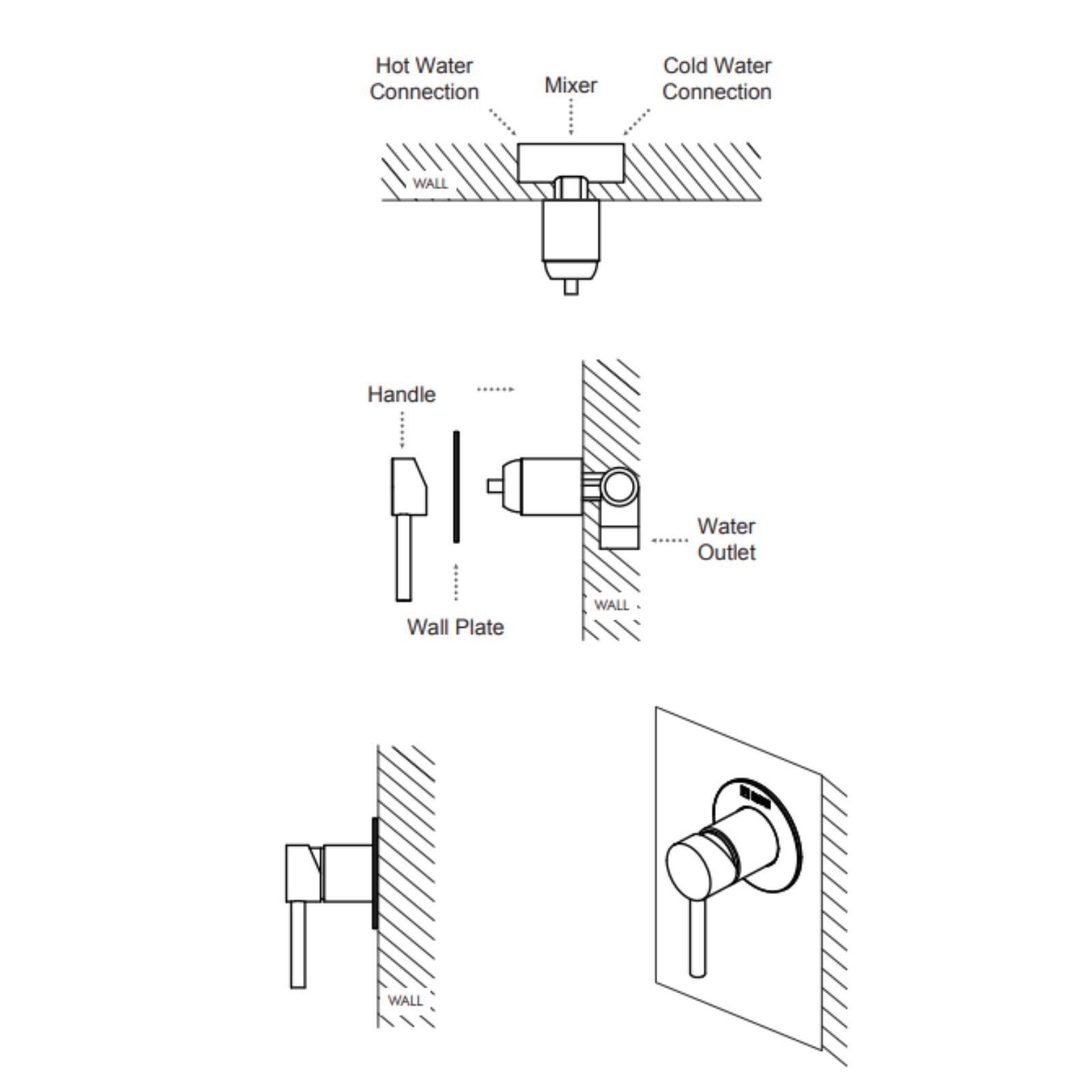 316 Marine Grade Stainless Steel Wall Mixer (External + Internal)- WMS001-316