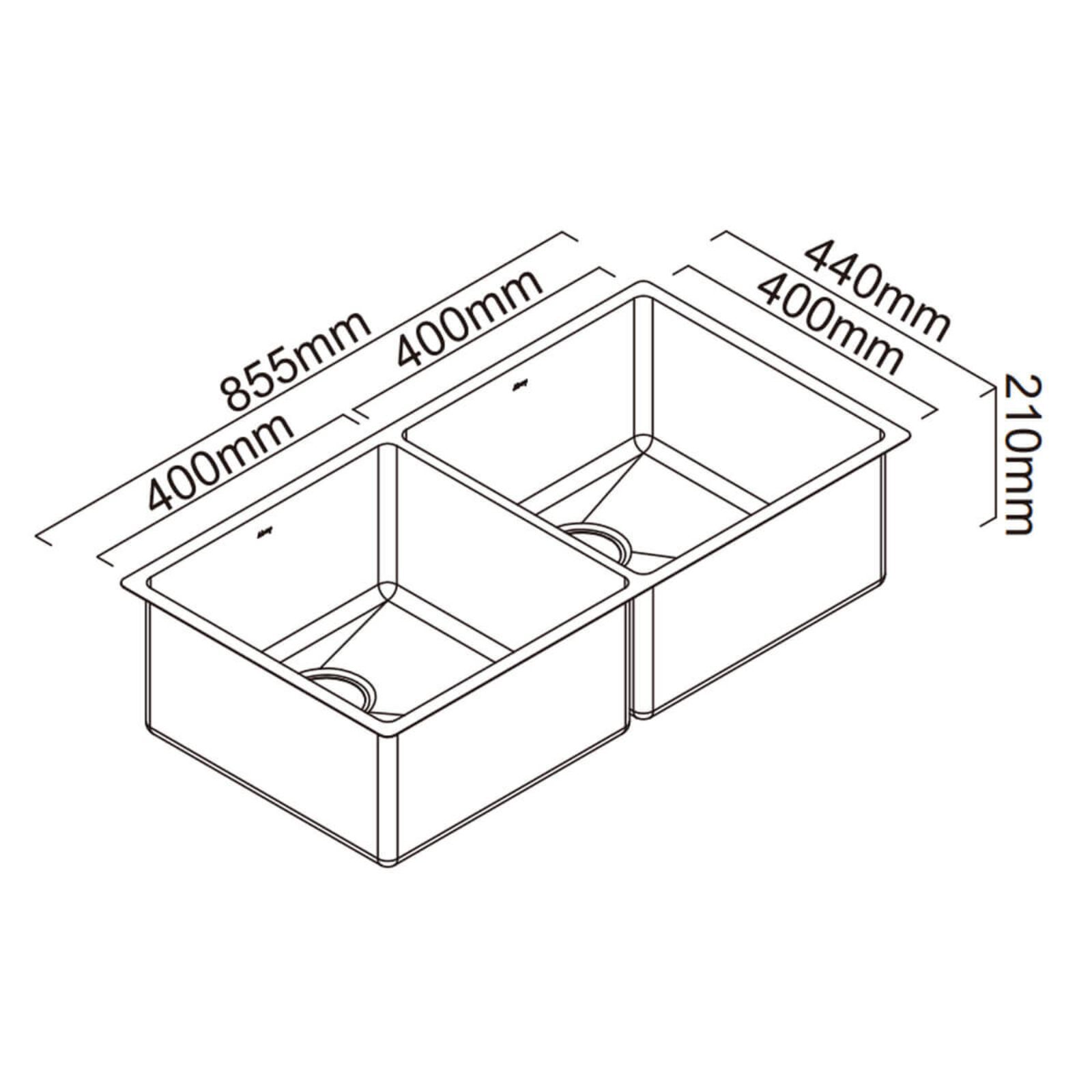 | Overall Sink Size: | 855mm x 440mm x 210mm deep |