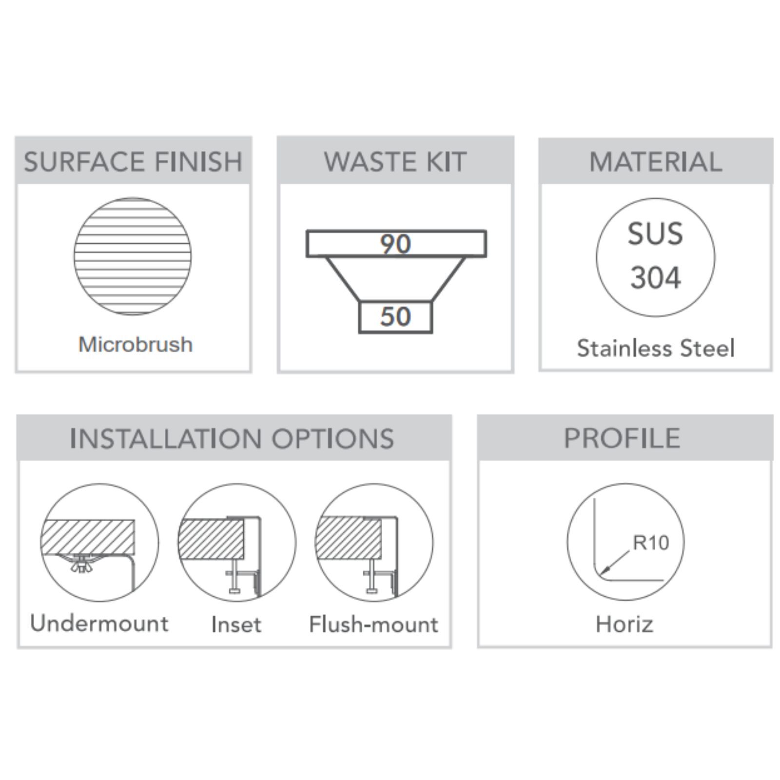 | Waste Holes: | 1 x 90mm round Compatible with waste disposal |