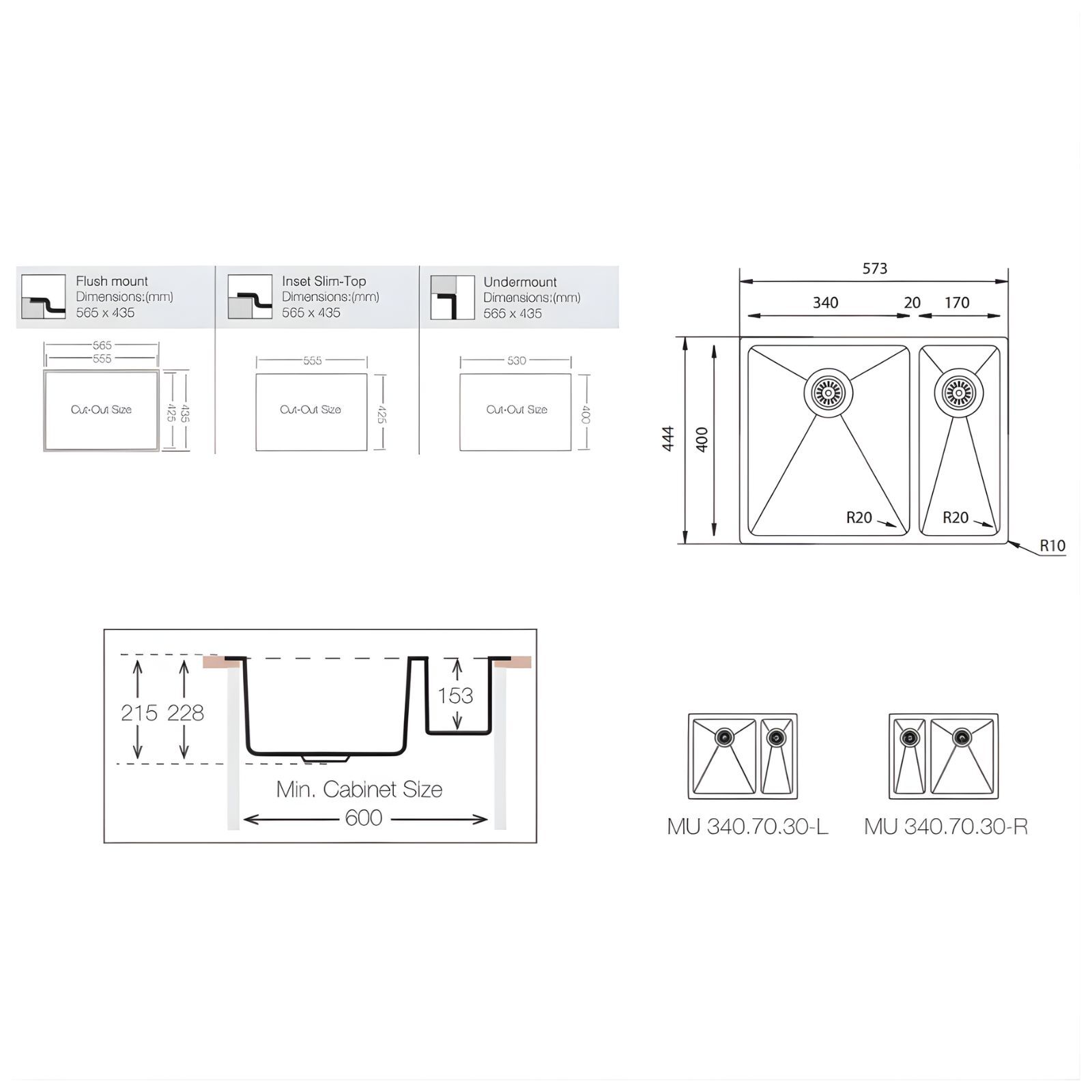 | Installation Type | Top Mount, Undermount or Flush Mount |