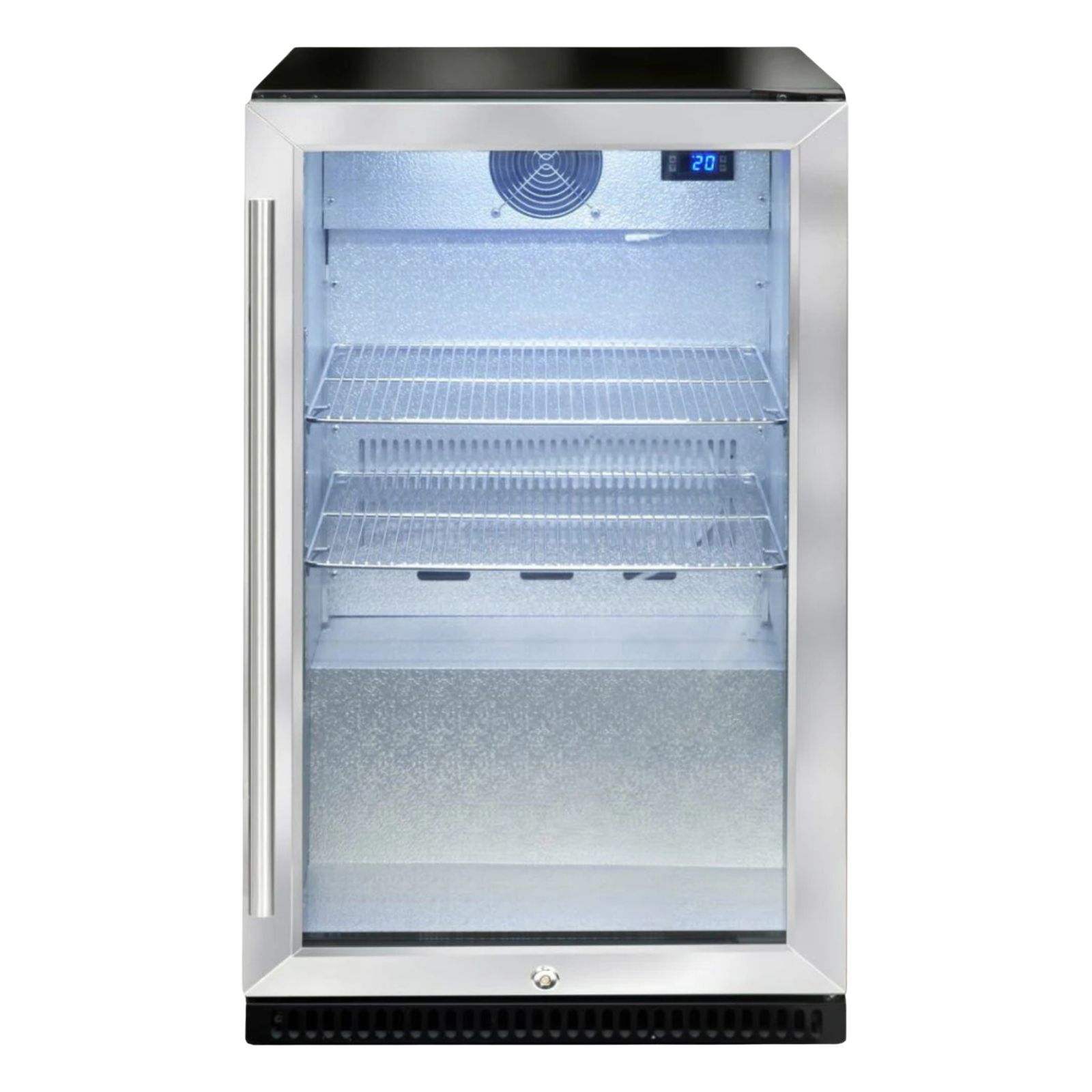 LED lighting elegantly showcases your beverages, and the UV-safe stainless steel finish adds durability and a modern touch, making it perfect for year-round outdoor use.