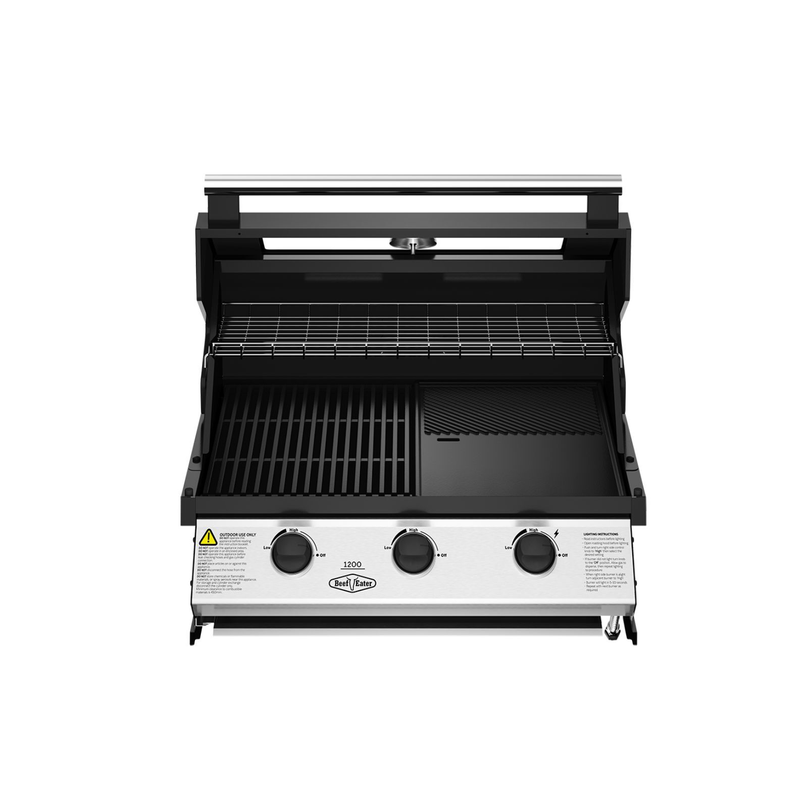 Beefeater 1200 Series Black Enamel 3 Burner Built In BBQ w/ Cast Iron Burners & Grills - BBG1230BB