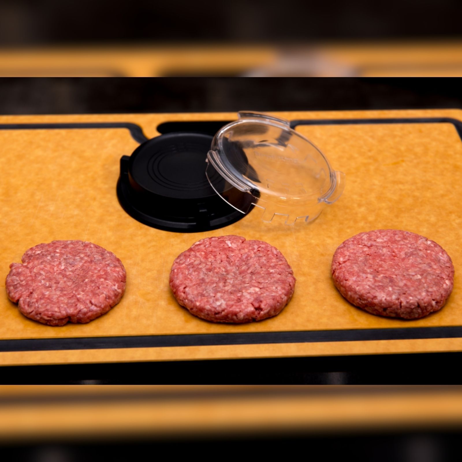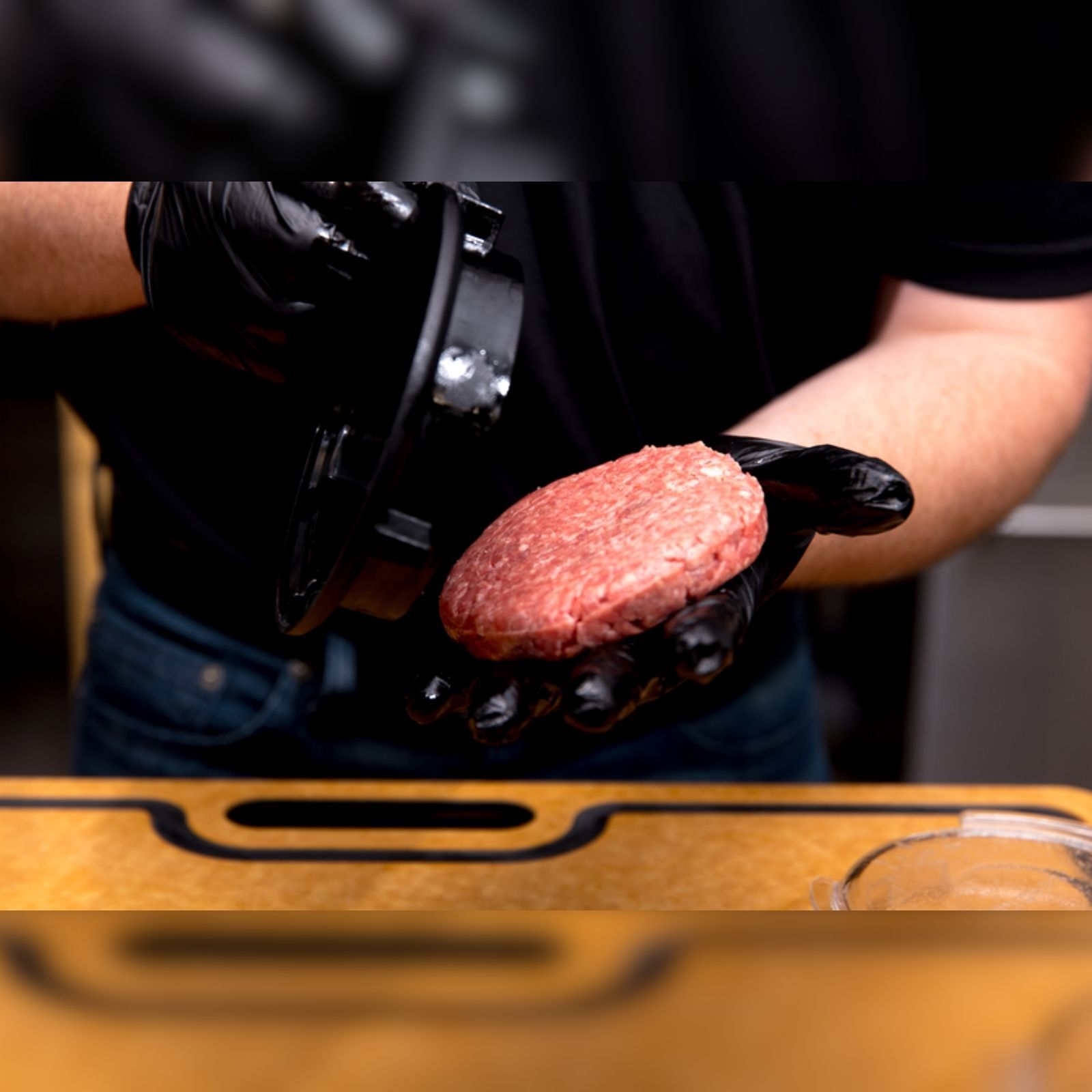| Dimpled burger shape prevents swelling and maintains shape through grilling | |