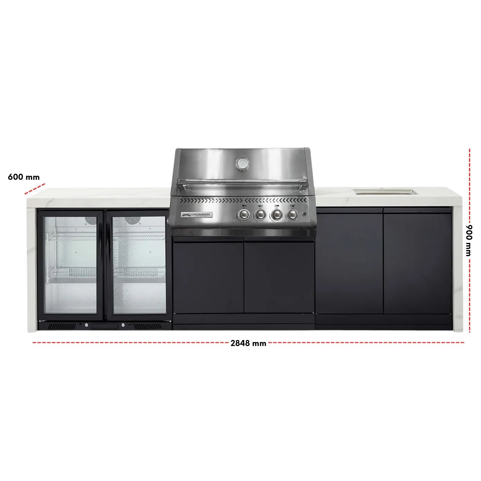 Crossray Premium Xplor Outdoor Kitchen with Double Door fridge and bench sink & cover - GD4KW-06