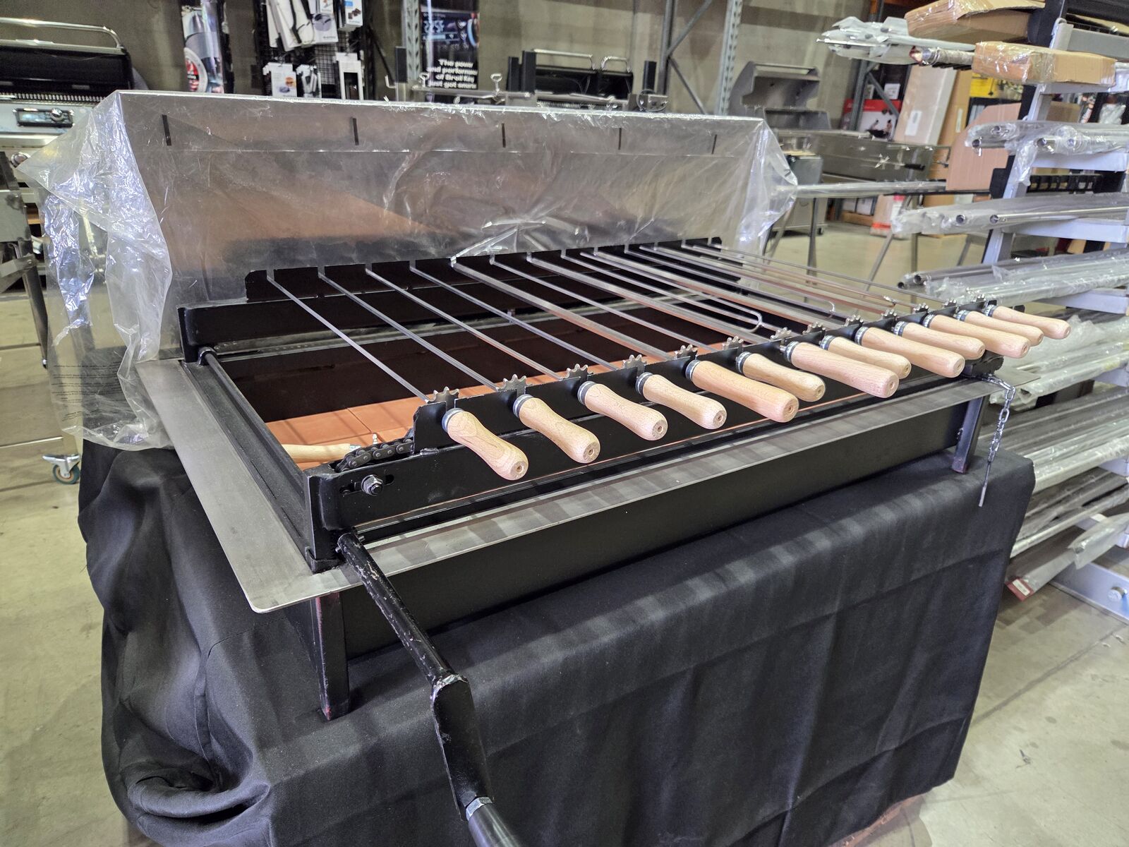 | Design: | This grill has 13 skewers rotating on a chain drive, the 13 skewers are height adjustable allowing a greater range of cooking. the skewers are placed in a line, this allows you to cook as much or as little as you require. The grill comes lined with heat brick to give a better heat and protect the area under the unit |