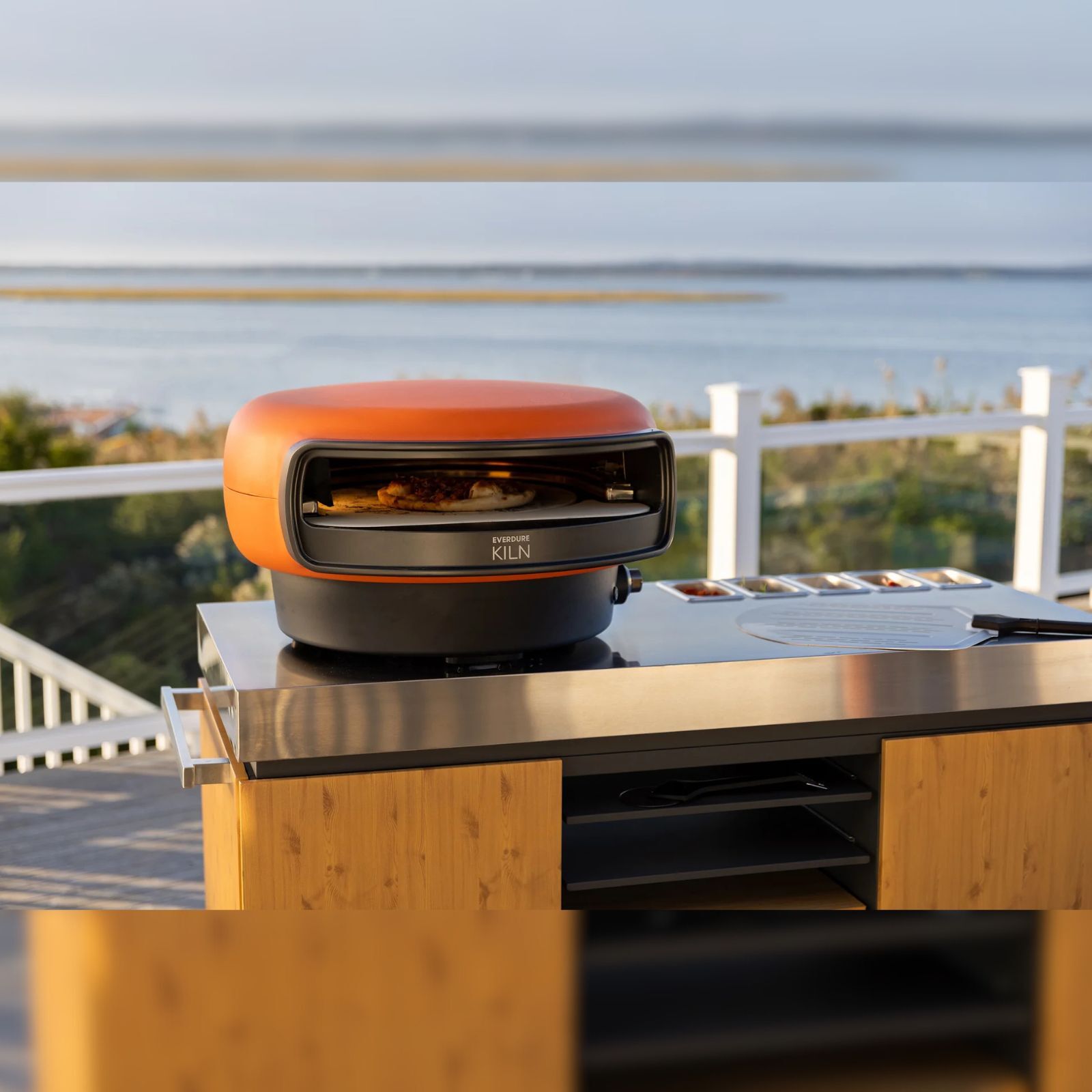 The KILN R Series 2-burner pizza oven brings a fresh twist to classic pizza-making, designed to deliver a seamless and genuine cooking experience right at home. This innovative oven boasts multifunctionality, whipping up a sizable pizza in less than two minutes while also being perfect for searing or baking a variety of other dishes.