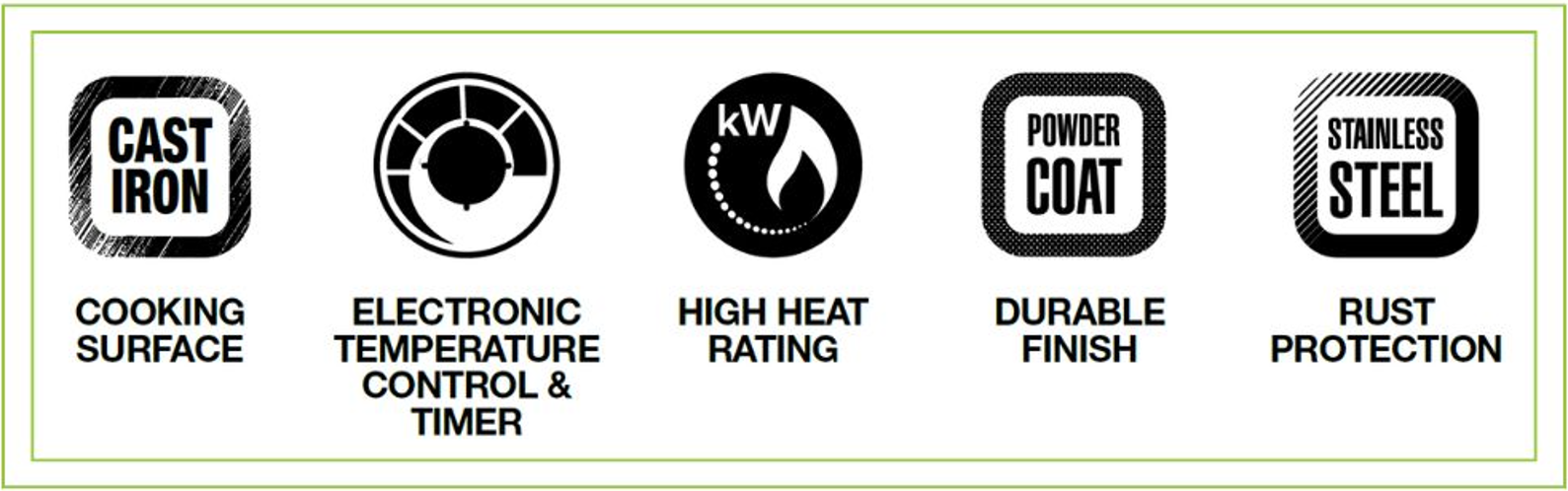| Cooking surface finish | Die cast aluminium |