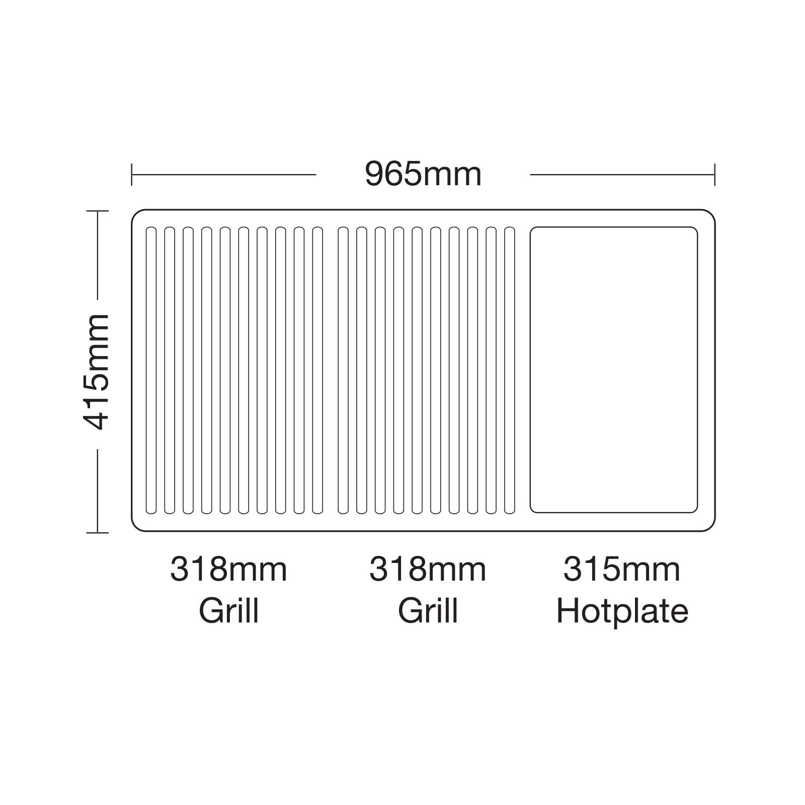 Hotplate & Grill (mm) | Plate - 315 W x 415 D Grill - 318 W x 415 D x 2 |