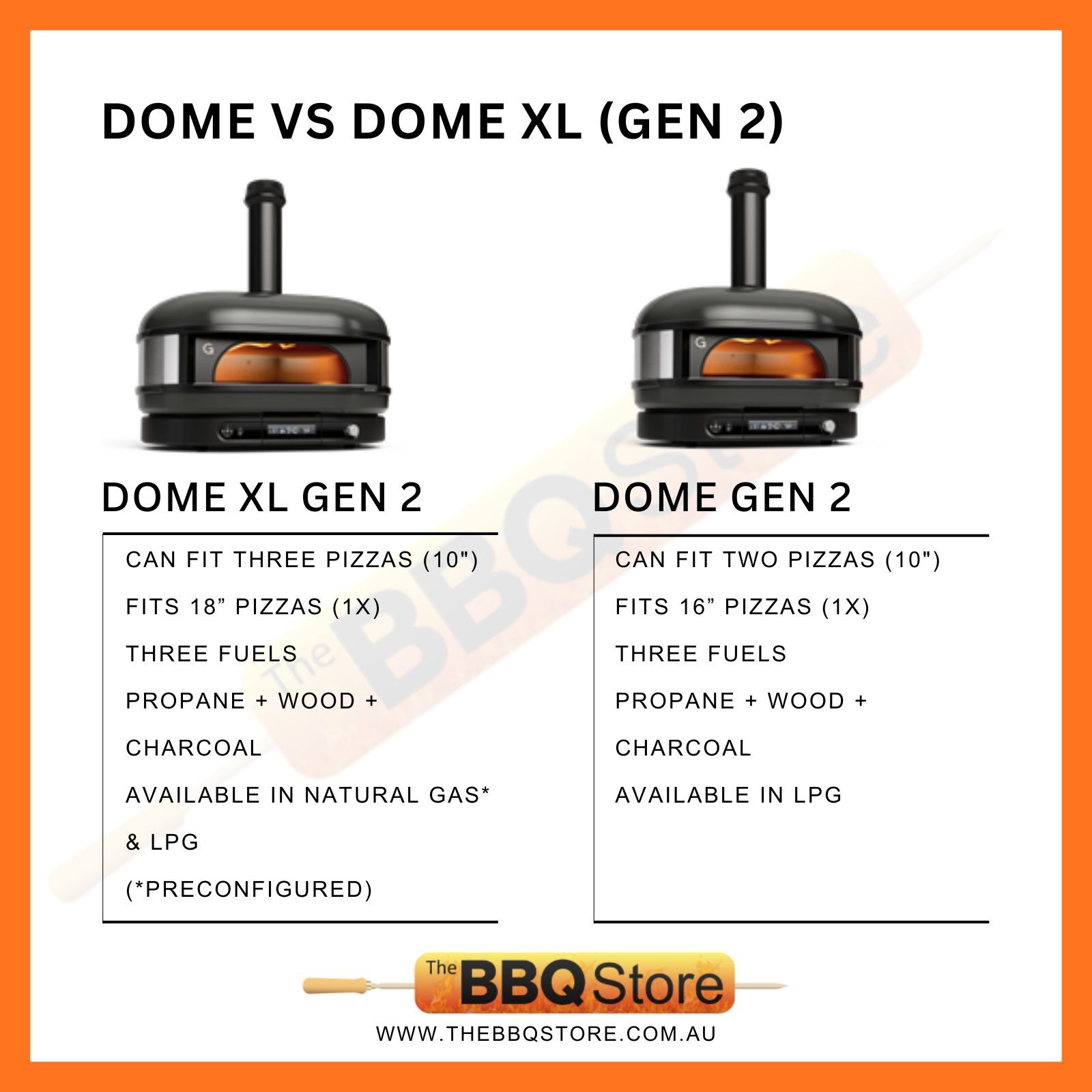 | Cook your way with hybrid fuel options: one oven, three fuels, unlimited possibilities. Choose the fuel that fits the moment. Cook with wood for rich, smoky intensity, gas for clean, quick heat, or charcoal for slow, earthy depth. Dome XL (Gen 2) brings the full spectrum of fire-powered flavor to your cooking. | |
