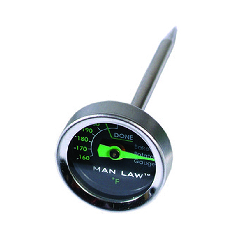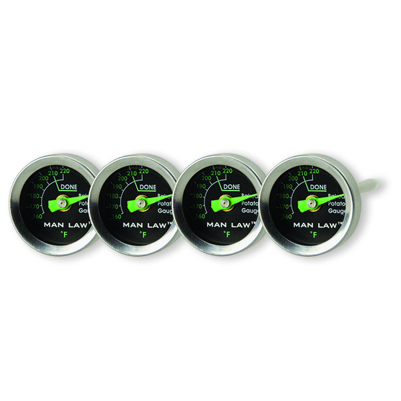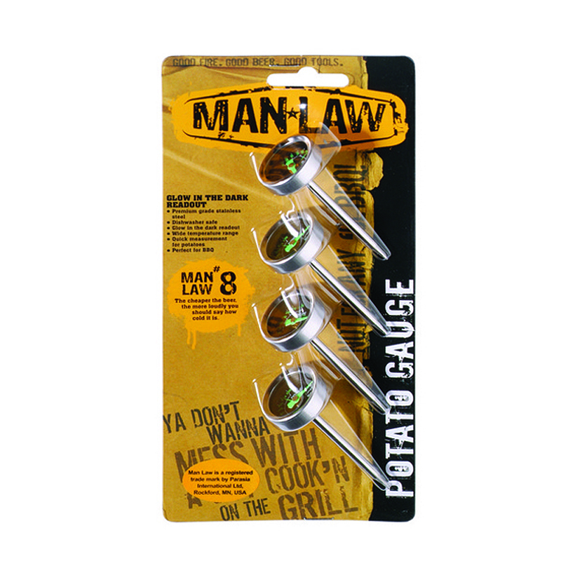 BBQs are not just about meat. Barbecued potatoes in foil have to be one of the great comfort foods of the great outdoors. The trick is to cook them properly – and now that’s easier than ever with MAN LAW potato gauges with glow-in-the-dark dials. Now you know when your potatoes are ready without having to cut them in half.