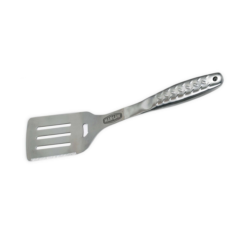 Man Law Heavy Duty 3 Piece Stainless Steel BBQ Set, Includes Fork, Tongs, & Spatula in a Box