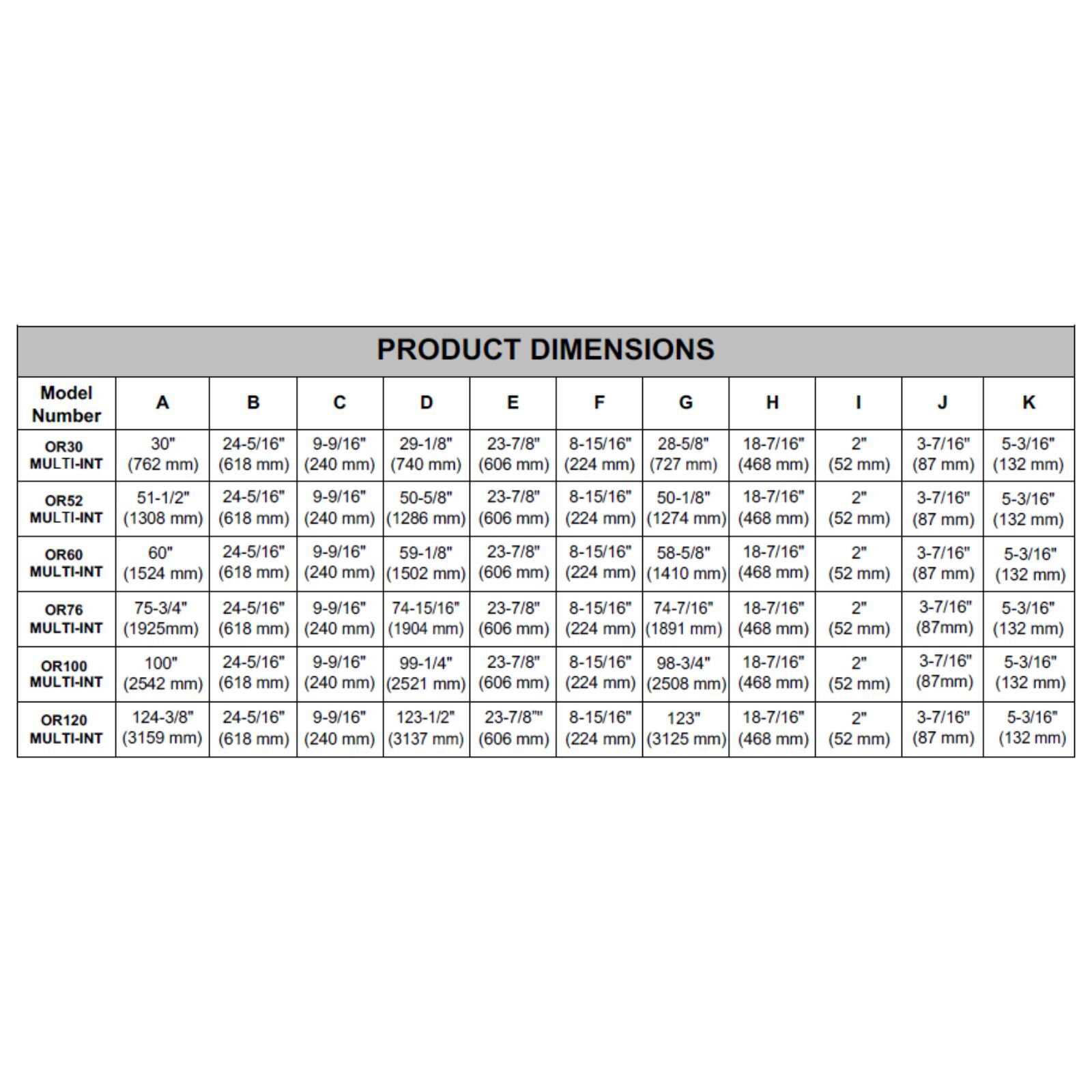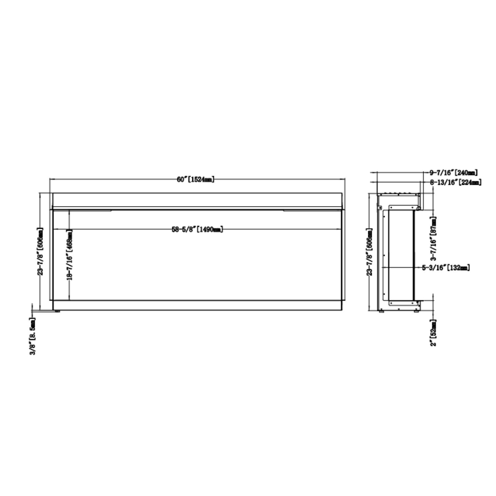 60 Inch: 466mm H x 1524mm W x 160mm D |