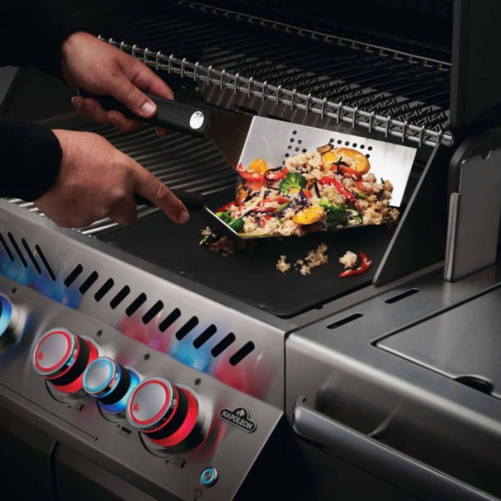 Bring the art of European-style grilling to your backyard with the Napoleon Plancha PRO 3-Piece Toolset. Crafted for precision and performance, this durable set is your go-to for planchas and griddles. The two oversized spatulas glide under food effortlessly, whether you're searing seafood, flipping burgers, or stir-frying veggies. Paired with a versatile chopper and scraper, it’s perfect for both cooking and quick cleanup. Designed with ergonomic comfort and built to last, this set delivers pro-level control every time you fire up the grill.