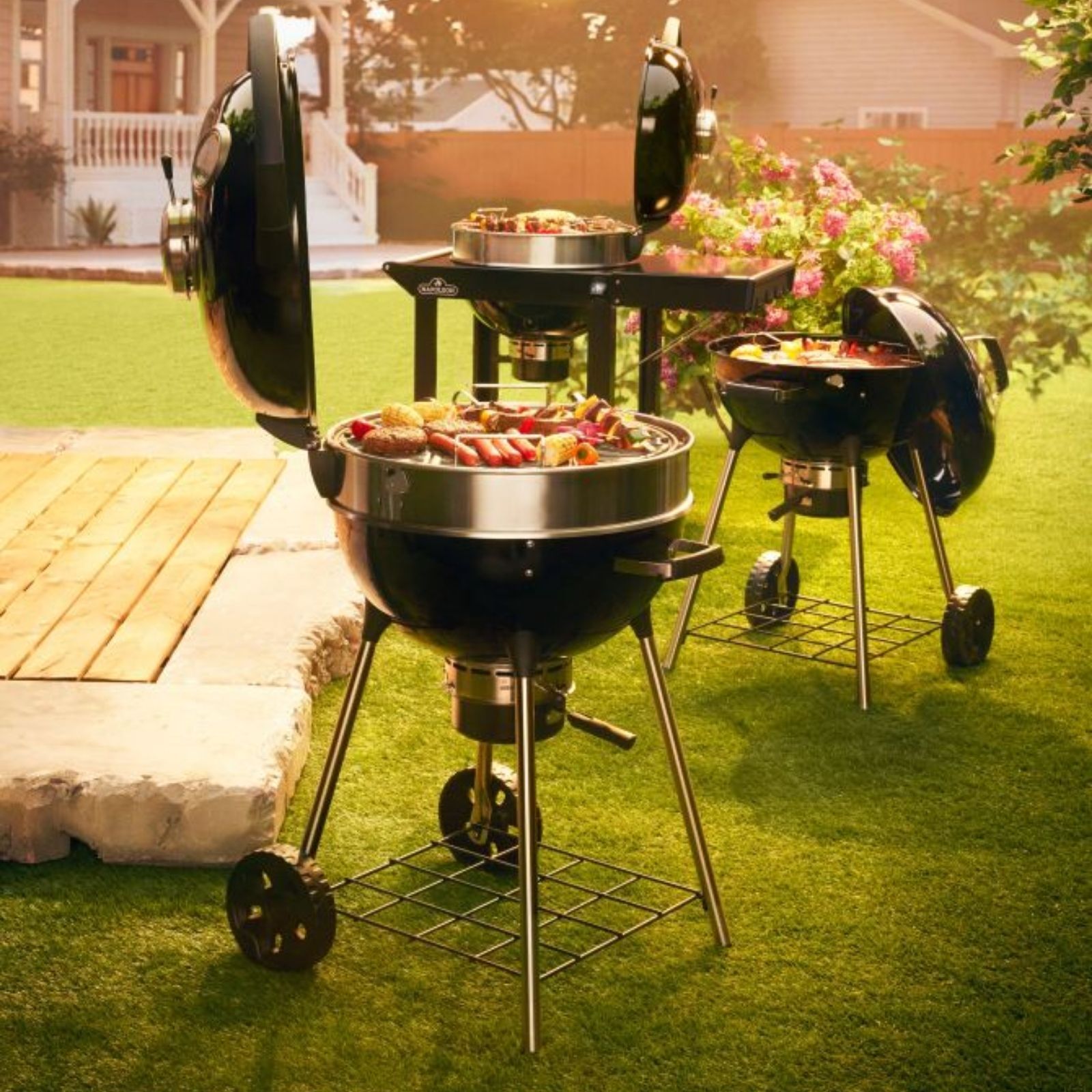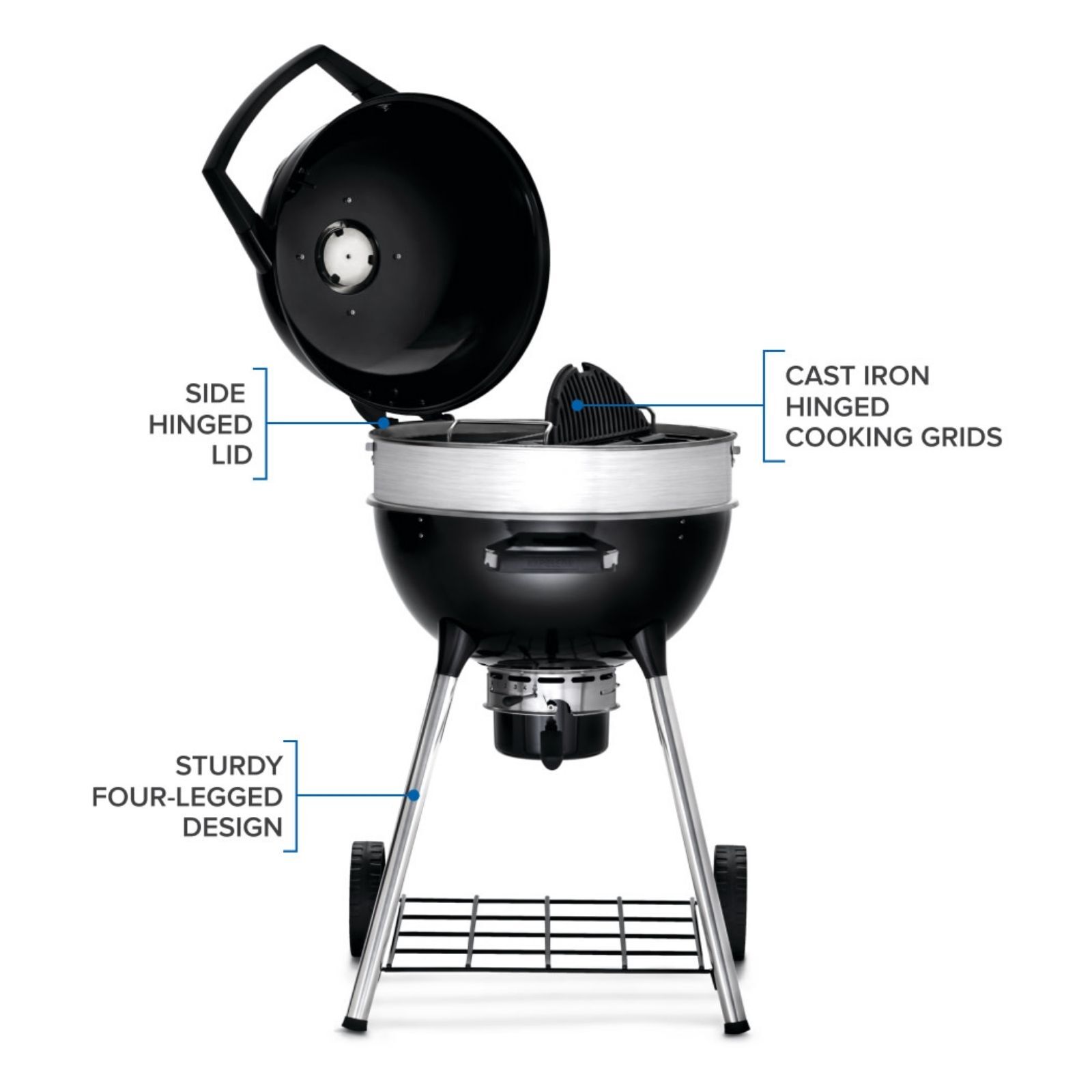 The Napoleon PRO22K-LEG is a versatile 22" charcoal kettle grill designed for searing, roasting, and smoking. Adjustable cast iron grids offer flexible cooking heights and easy charcoal access. The Vortex heat system boosts airflow and fuel efficiency, while the Smoke Stack Chimney keeps temperature control precise, even in wind or rain. Rotisserie-ready and built from durable porcelain-coated steel, this grill is made to perform and built to last.