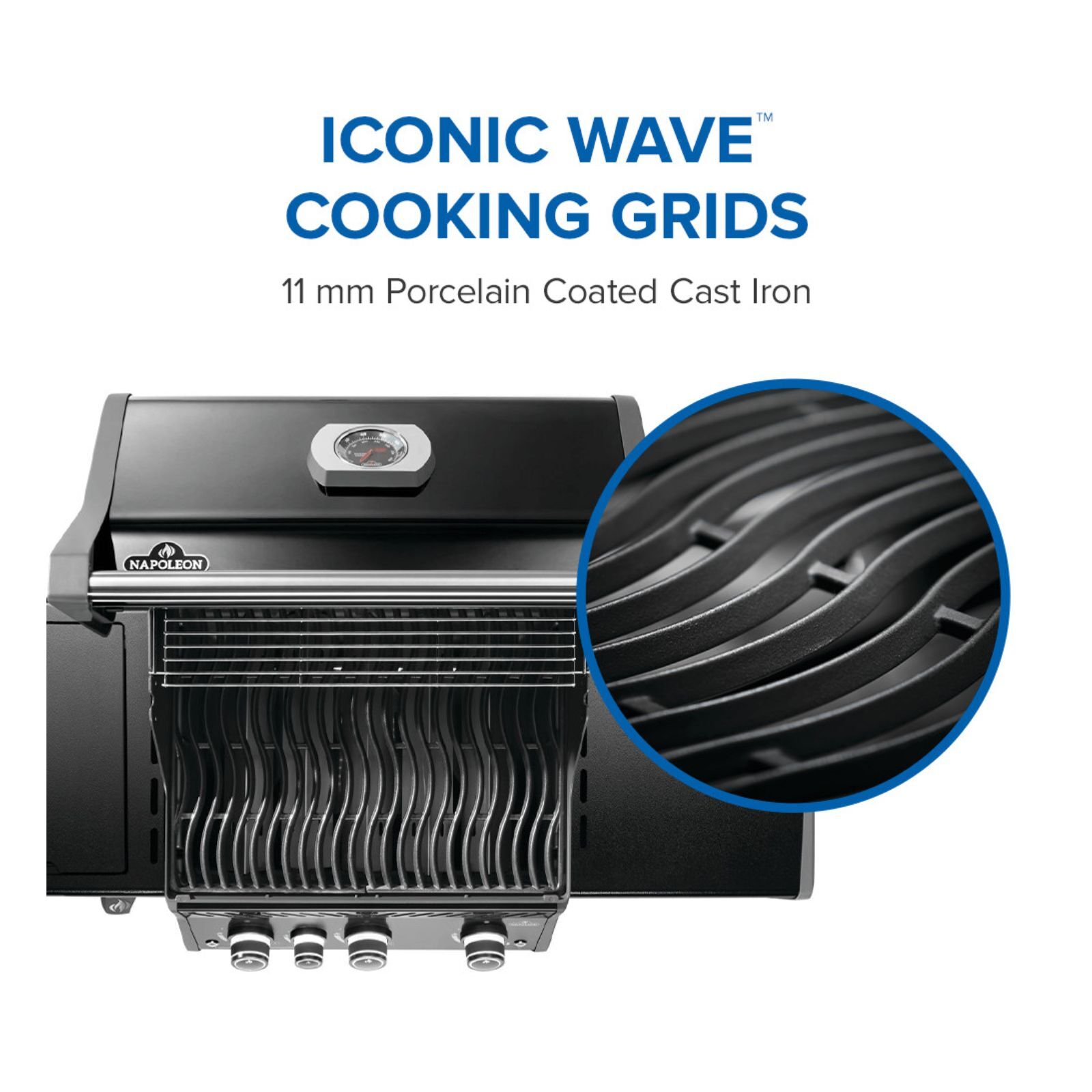 WAVE SHAPED GRATES: The iconic WAVE™ shaped cooking grids provide even heating, prevents food from falling through, and produces exceptional sear marks |