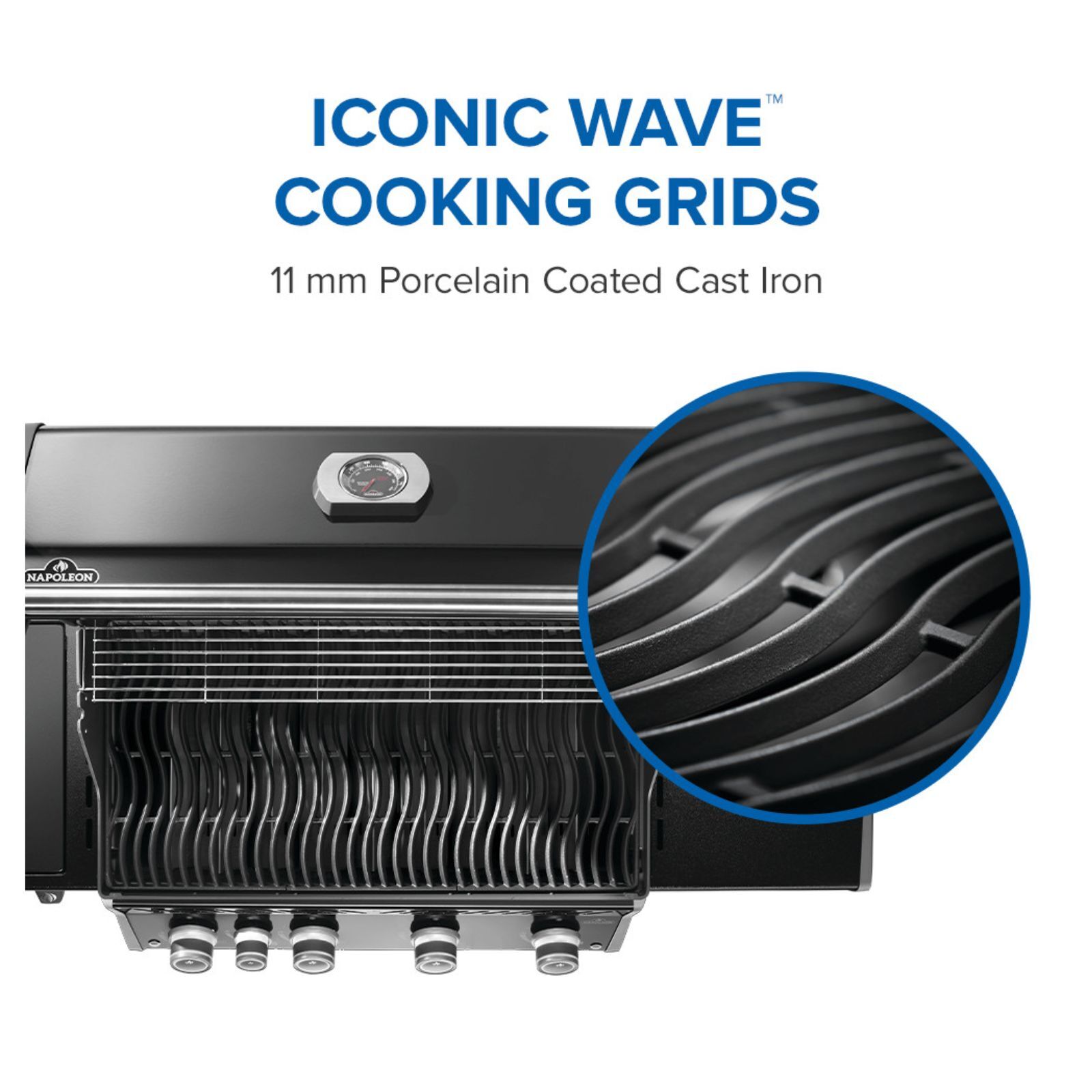 WAVE SHAPED GRATES: The iconic WAVE™ shaped cooking grids provide even heating, prevents food from falling through, and produces exceptional sear marks |