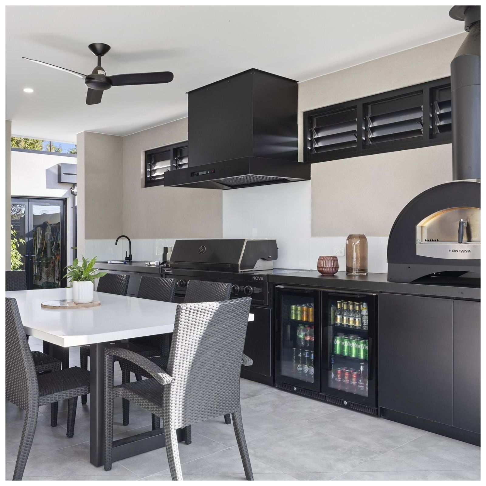 Completing the package is the Gasmate 2 Door Premium Bar Fridge 187L, paired seamlessly with the Gasmate NOVA MK2 Premium 2 Door Bar Fridge Top. Together, they create a cohesive and sophisticated look while keeping refreshments conveniently close at hand. The result is a polished, unified outdoor kitchen that’s ready for effortless entertaining.