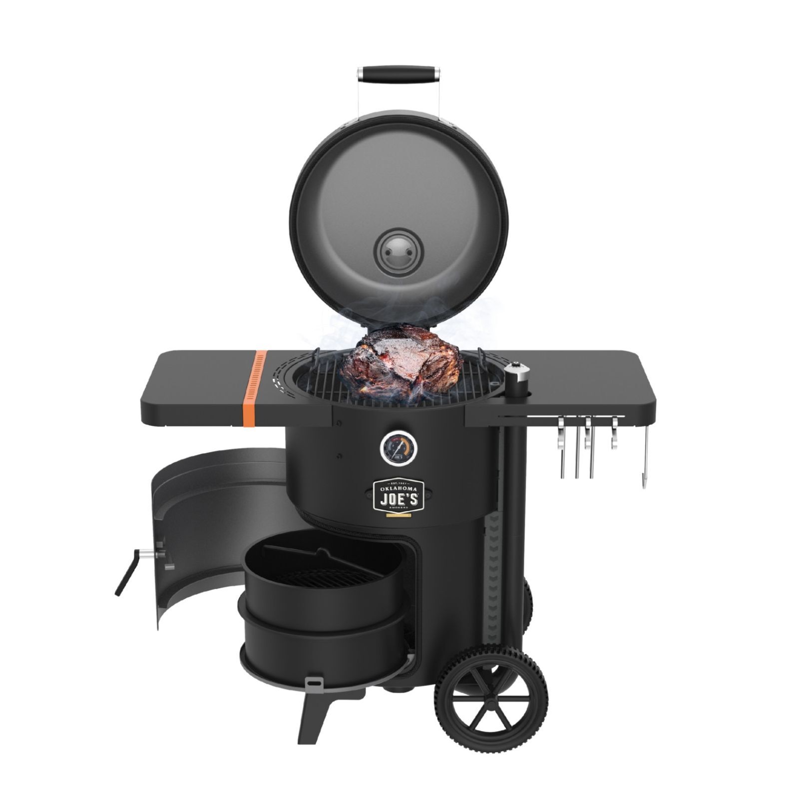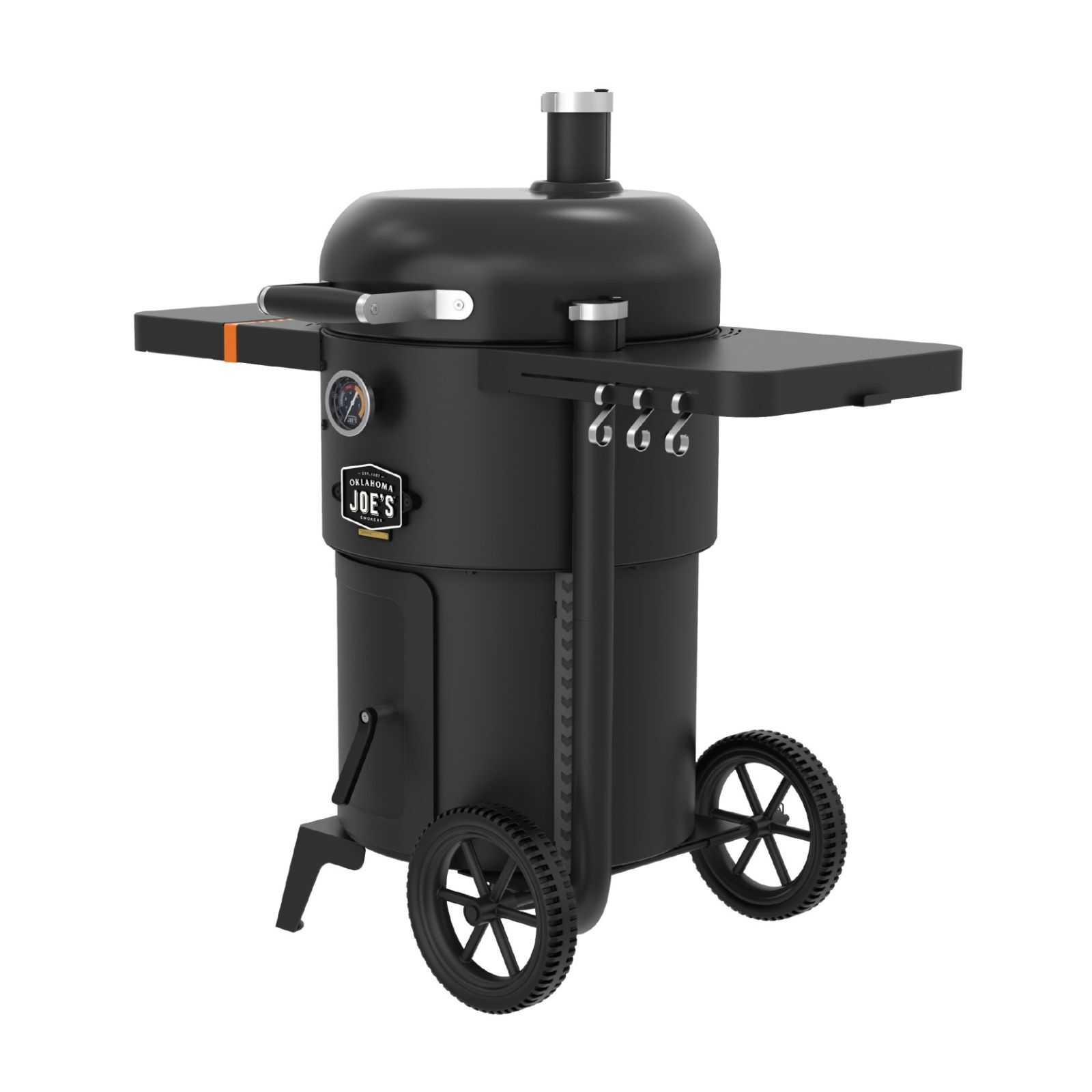 Cook low and slow for up to 14 hours or turn up the heat to sear your favorites using the included split grates and meat hangers. Its vertical drum shape ensures even heat distribution while giving you more space to grill or smoke.