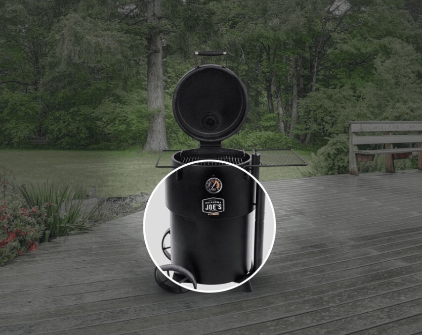 The Oklahoma Joe’s® Bronco Drum Smoker has a unique airflow control system and sealed lid that deliver precise control over smoke and heat. Its movable grate and additional meat hangers let you customise your setup your way, while the oversized charcoal basket holds enough fuel for all-day smoke therapy.