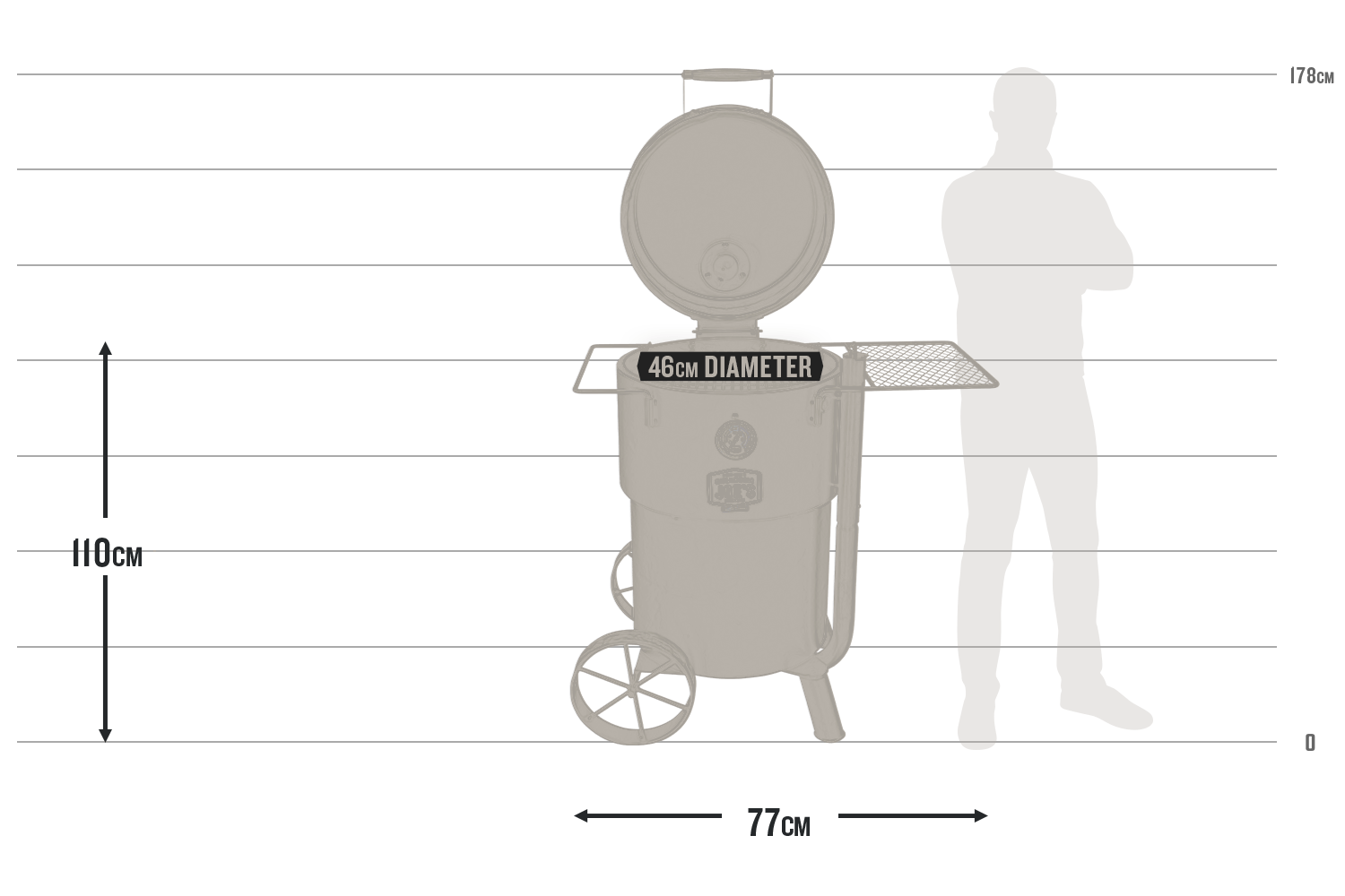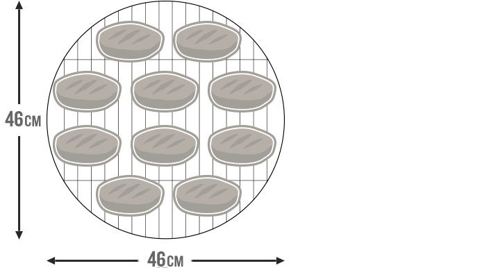 | Oversized, eight-pound charcoal basket holds enough fuel for over 10 hours of smoking time, | |