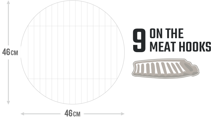 The oversized, eight-pound charcoal basket holds enough fuel for over 10 hours of smoking time.