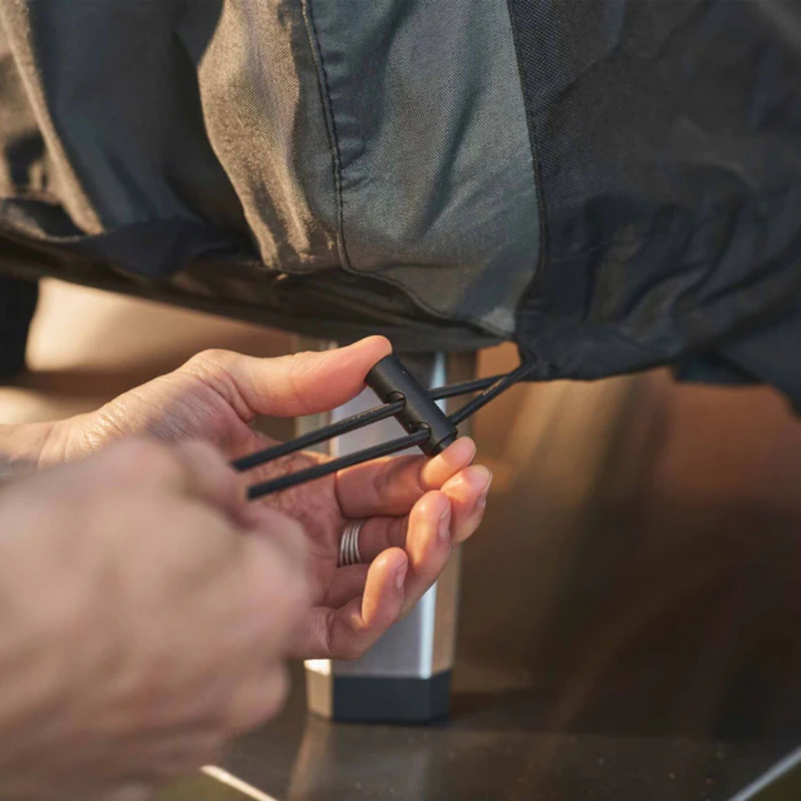 Drawstring toggles for a snug fit Hugs the body of the oven for extra protection and water resistance |