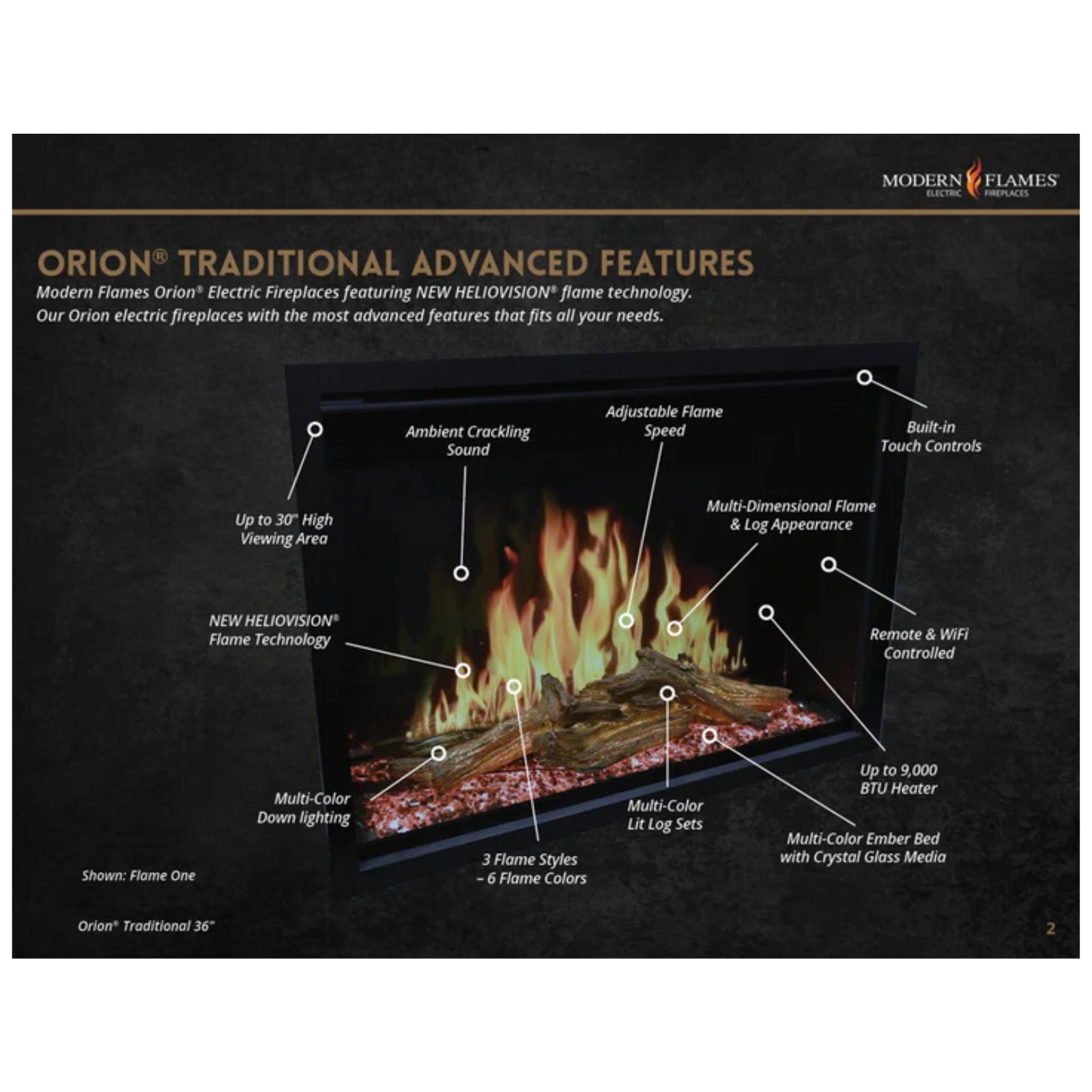 ORION 54" TRADITIONAL HELIOVISION FIREPLACE - OR54-TRAD-INT