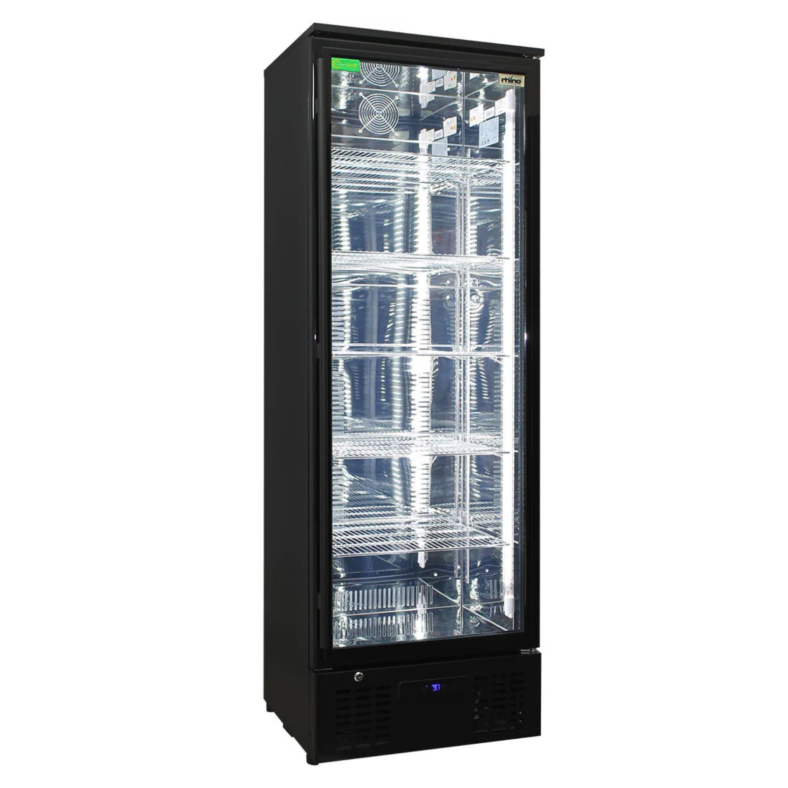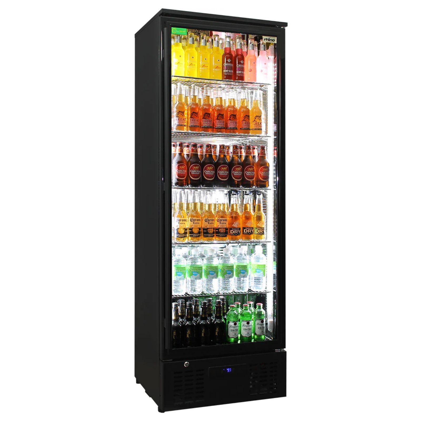 The Rhino Black Commercial Upright Triple Glass Door Bar Fridge combines sleek design with reliable performance, making it ideal for bars, cafés, and hospitality venues. Its modern black finish and polished interior create a premium display that keeps beverages looking appealing and easy to access.