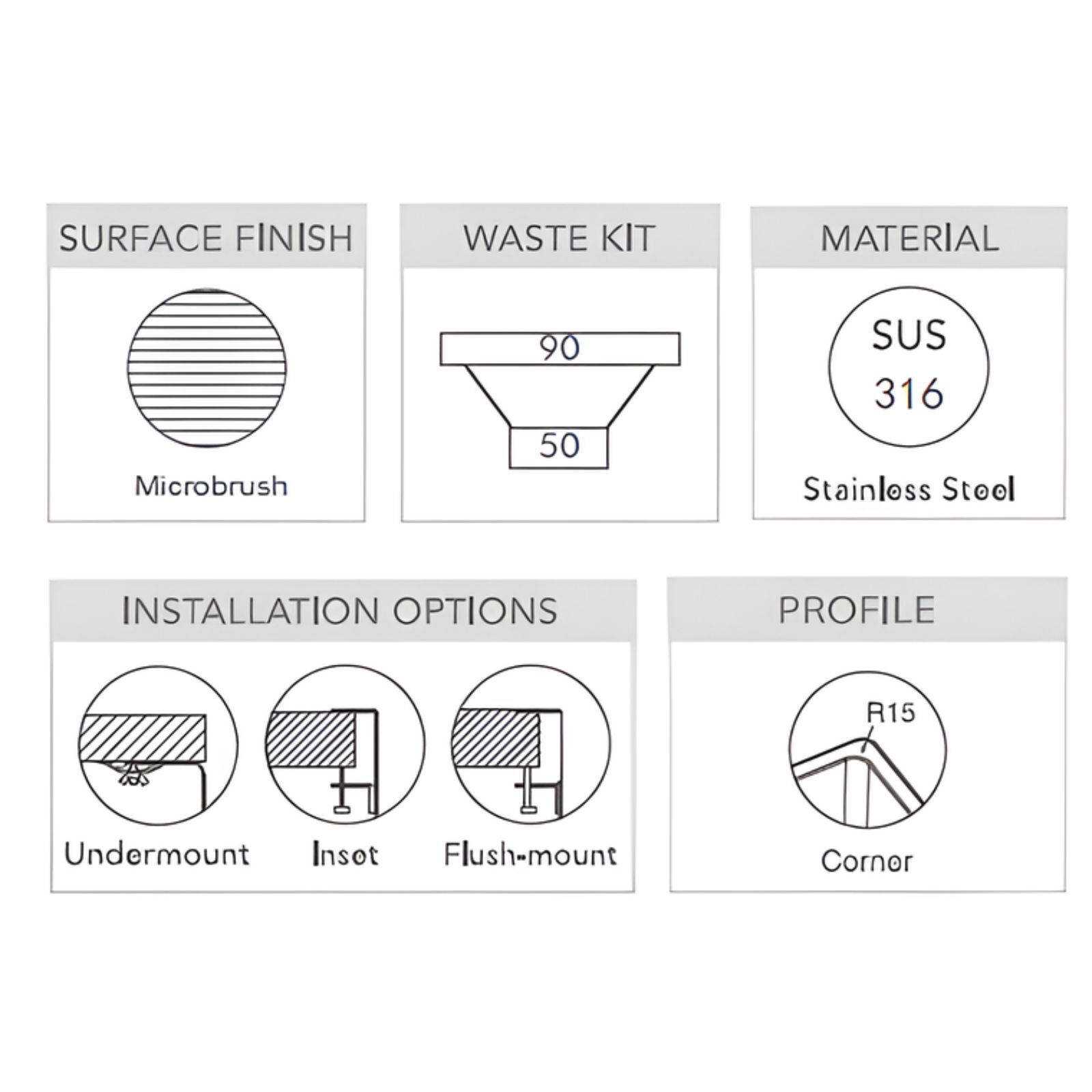 | Installation Options: Undermount, Inset, Flush-mount | |